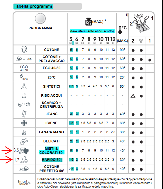 il manuale era gia presente sul mio pc , vedi evidenziato i lavaggi che ho consigliato al mio amico