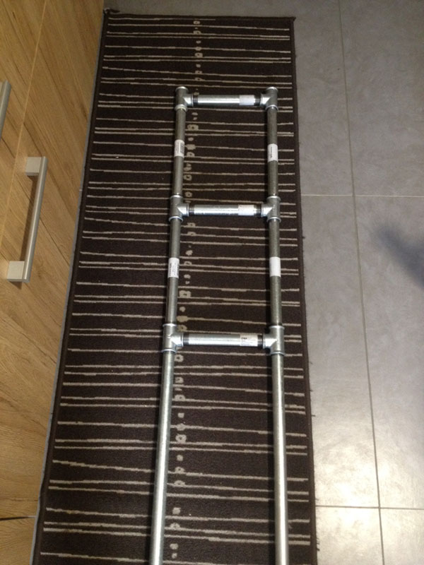 Se l'idea ti aggrada e hai il trapano a colonna, poi (se vuoi) ti spiego come alesare le T per fare l'accoppiamento preciso con il tubo dello scalino.