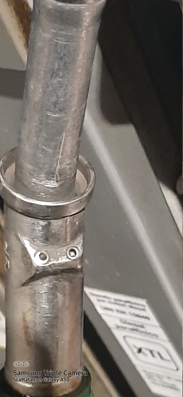 Quindi, appena finisce l'erogazione, questi fori pisciano FUORI dal bocchettone e mi sbrodolano tutto il vano. Per cui, anche se lascio la pistola inserita, la benzina cola nel vano e da lì sulla carrozzeria e la ruota.