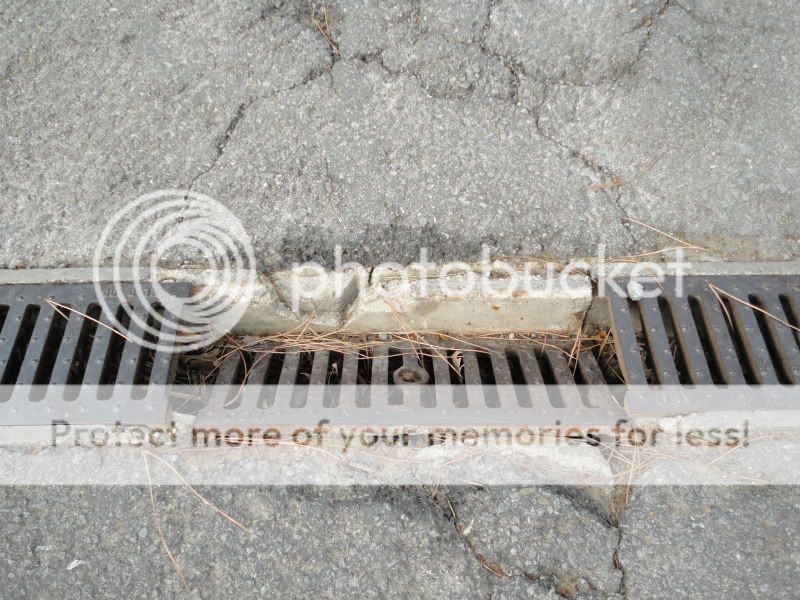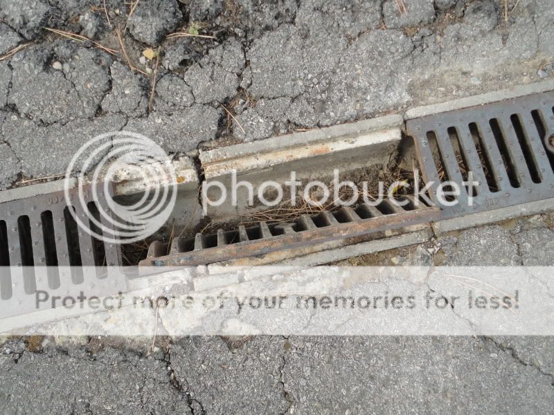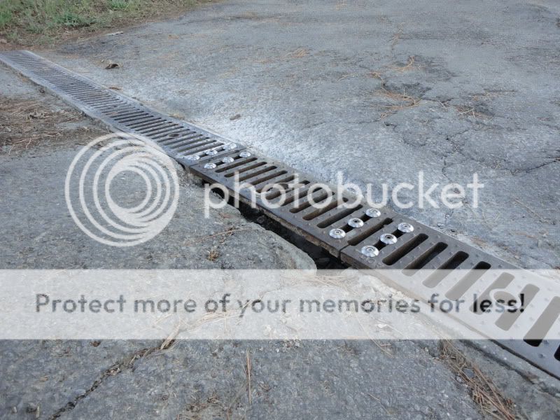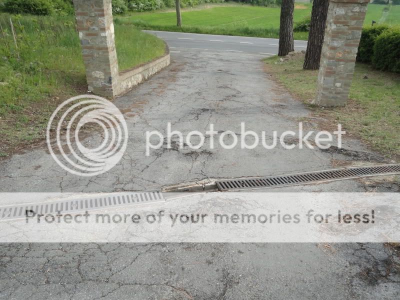 A me sarebbe venuta un altra idea: nella parte in basso della strada, dove la parte di canaletta è proprio distrutta, potrei eliminare la griglia metterci sotto un pezzo di tubo di plastica 100 e poi riempire la zona di calcestruzzo, magari anche armandolo con della rete...
