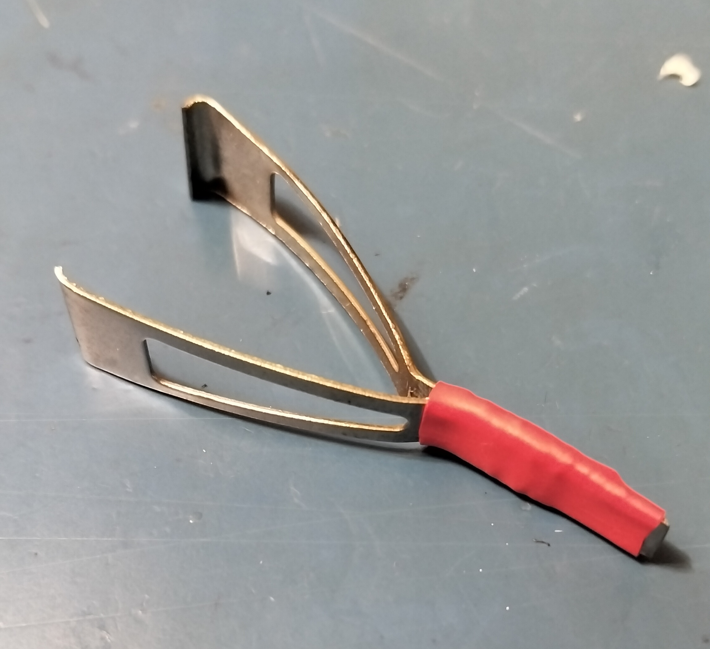 avvolto i due gambi con filo interdentale e bagnato con altro cianoacrilato e un po' di bicarbonato, quindi ricoperto con guaina termo-restringente.