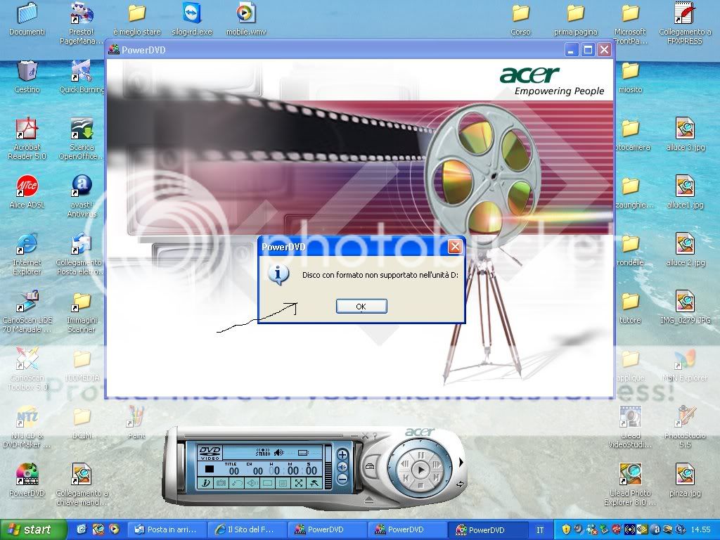 isex ha scritto:Immaginavo ... PowerDVD cerca il formato .IFO .VOB del DVD dentro la directory VIDEO_TS che deve essere formattata secondo un certo schema tipico del DVD. Attenzione con PowerDVD puoi leggere anche i normali CD, Video CD e SVCD ma in questo caso non capisco perchè tu vuoi aprire delle foto JPG con PowerDVD.