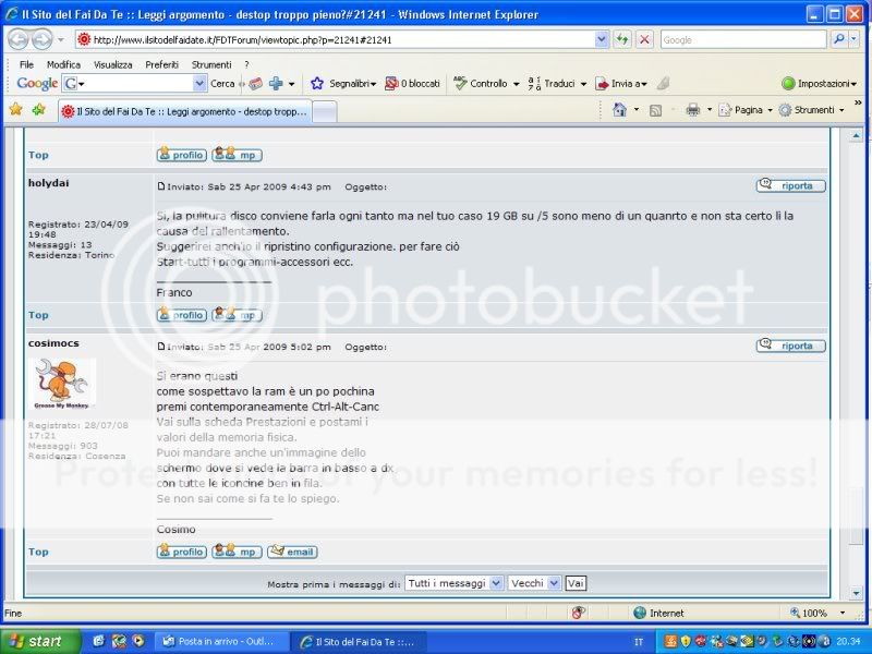 allora l'antivirus è AVAST, per lo spazio libero sul disco mi devi spiegare dove lo trovo, le iconcine sono 11, per la scansione, no non ho fatto niente. Casomai se mi giudi passo passo forse ce la potrei anche fare. Con le mie scarse conoscenze di informatica da solo penso di no.