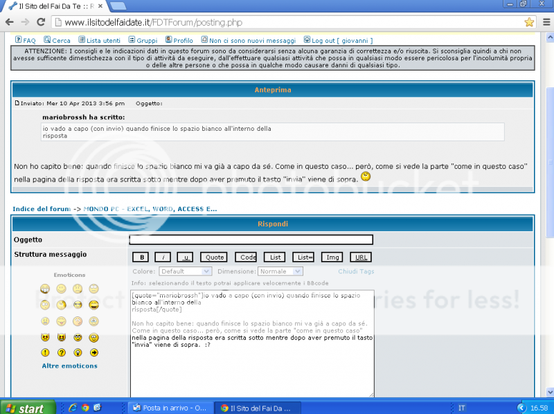 mariobrossh ha scritto:si va a capo da se nel tuo spazio di bianco di risposta ma poi quando viene